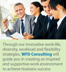 Global Study on Men and Work-Life Integration reveals that, when it comes to work and family, men and women are more alike than different. This finding conflicts with a widely-held assumption that men identify more strongly with work and women with personal/family life. Survey: The State of Work-Life 2010 Workload in America 2010 WFD Consulting presented research on workplace flexibility for hourly workers at the Corporate Voices for Working Families Annual Partners meeting in May 2009. Recently published research in the Community, Work & Family Journal on 25 leading organizations by work-life experts at WFD Consulting and academic scholars reveals that flexibility has a positive impact on employee engagement, retention, stress and burnout. WFD presents the New Career Paradigm study, describing what is driving today's career choices and how these patterns affect companies' recruitment and retention efforts. |